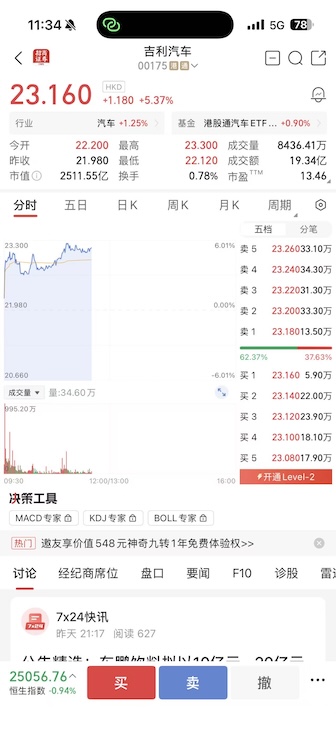 4月2日,吉利汽车(0175.HK)开盘逆势走强,盘中一度涨超5%。截至发稿,股价报23.16港元,涨幅4.82%,创下近四年新高,领跑港股汽车板块,并跑赢恒生指数大盘。近一个月以来,吉利汽车累计涨幅...